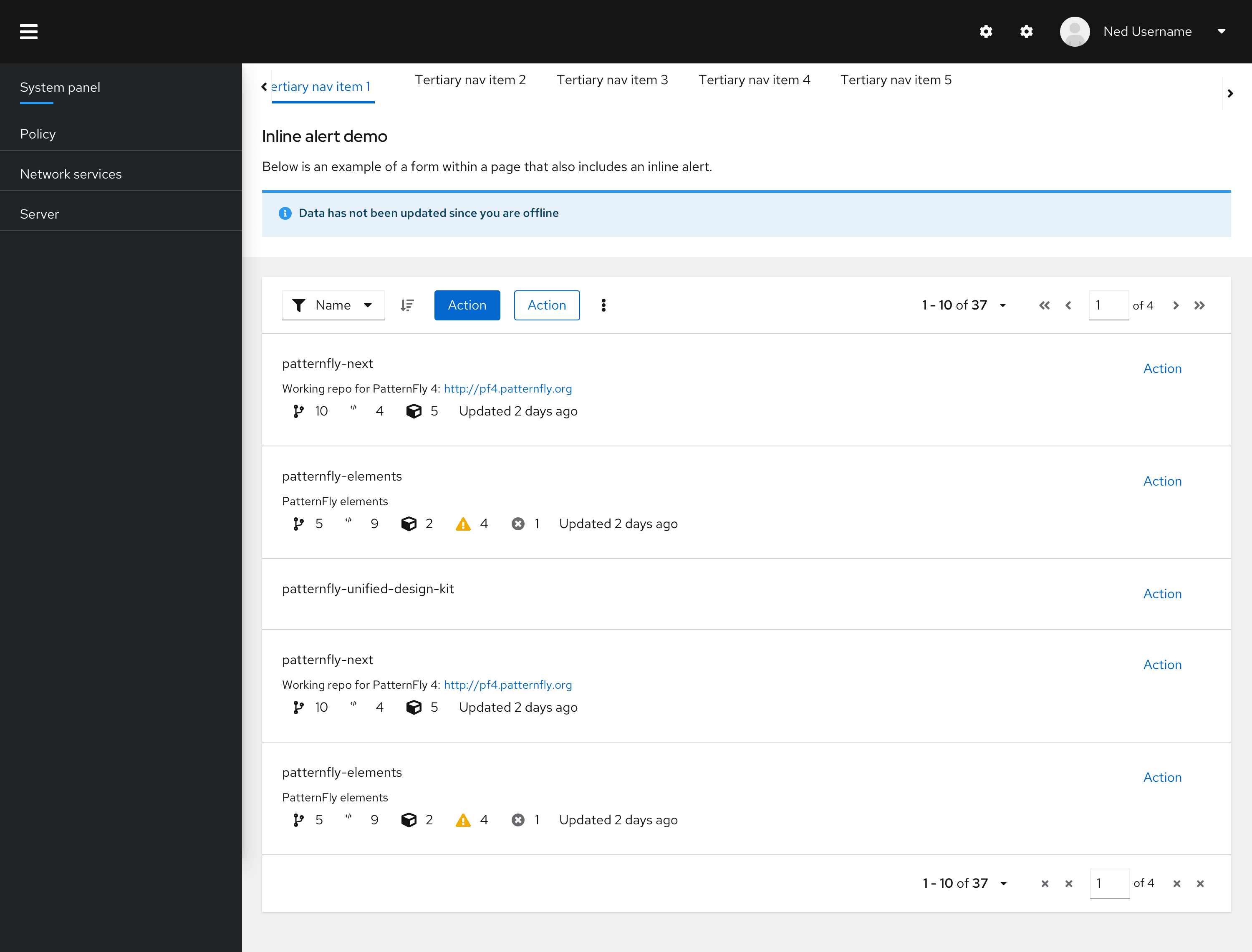- If the alert is not relevant to the entire page, the white header area should be extended below the tab and separated from the tabs by a gray line. Place the plain inline alert in the resulting “banner”: