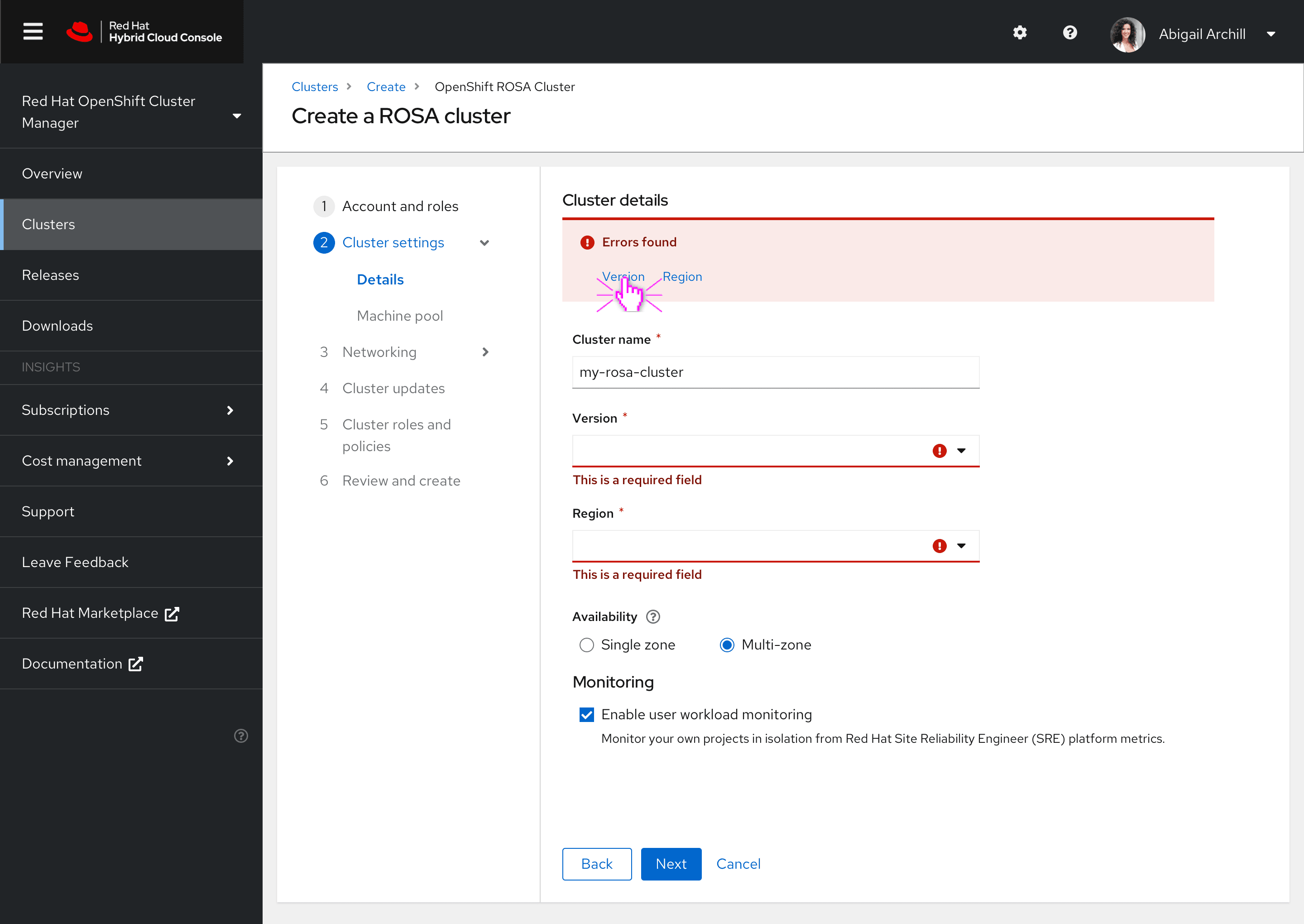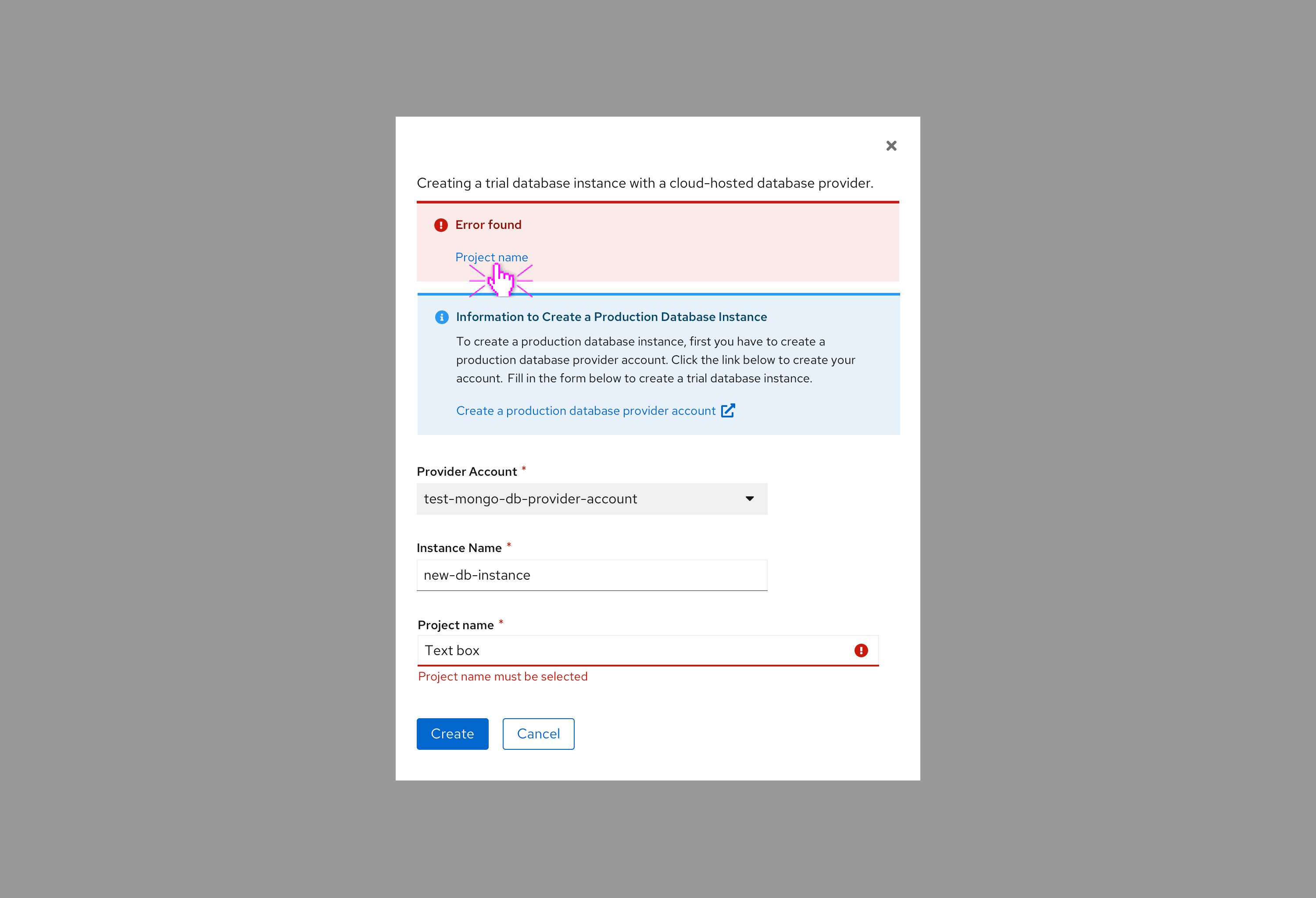 - If the alert is being used to indicate errors on a modal, use an error validation summary at the top of the modal below the title to indicate what errors are present. Show an error alert next to the field that is causing the error. The error message should be concise and actionable. It should tell the user what happened and the next steps needed to fix it.