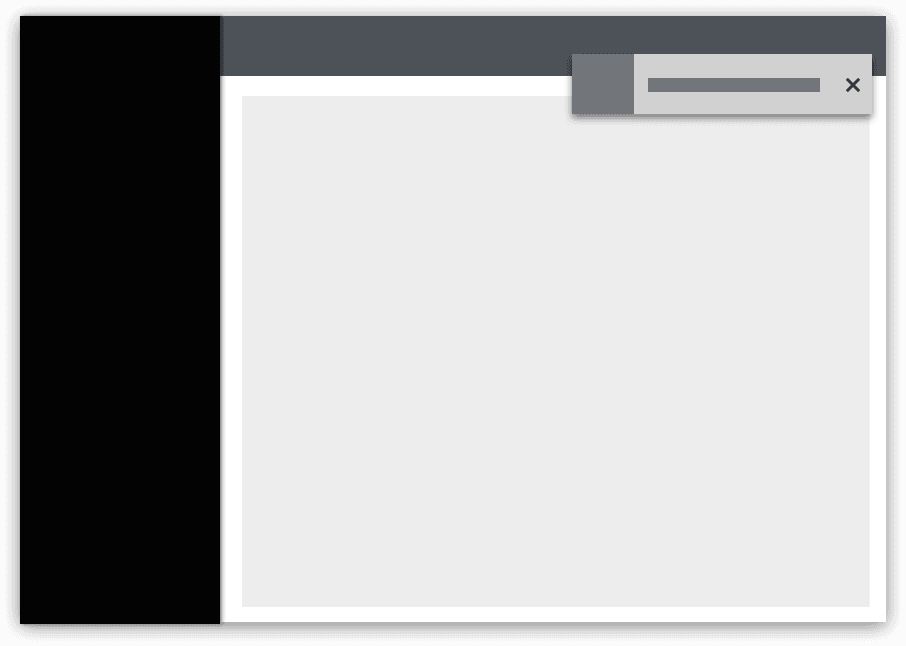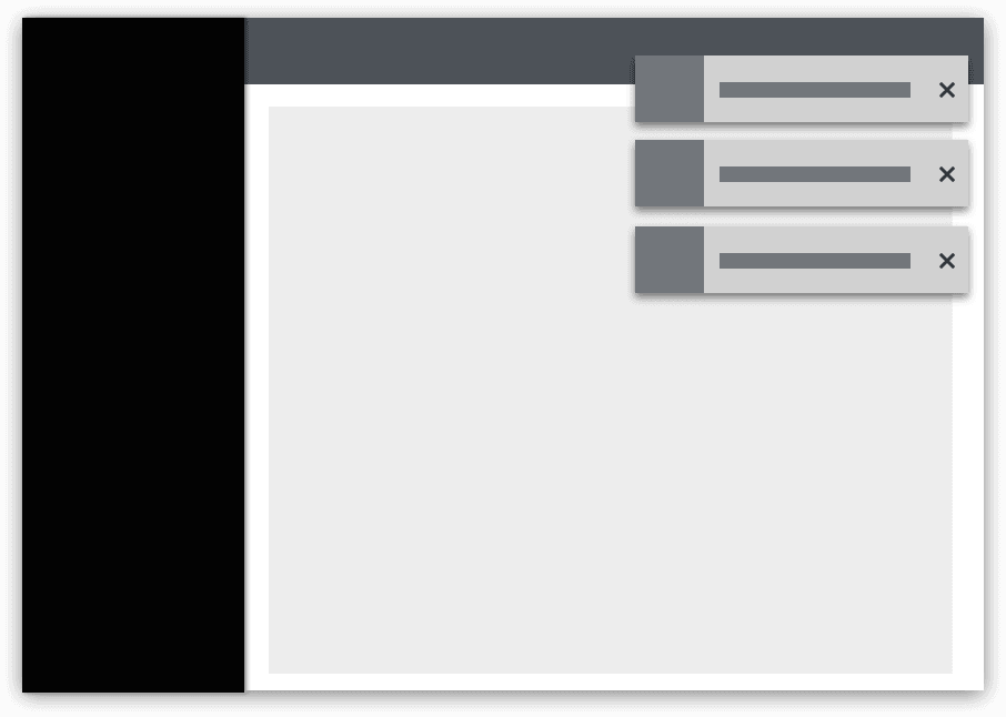 Toast alerts communicate information about an update, confirmation, or other activity. A toast alert overlays content in the upper-right corner of the page and disappears when it times out or when the user dismisses it.