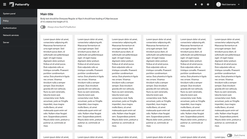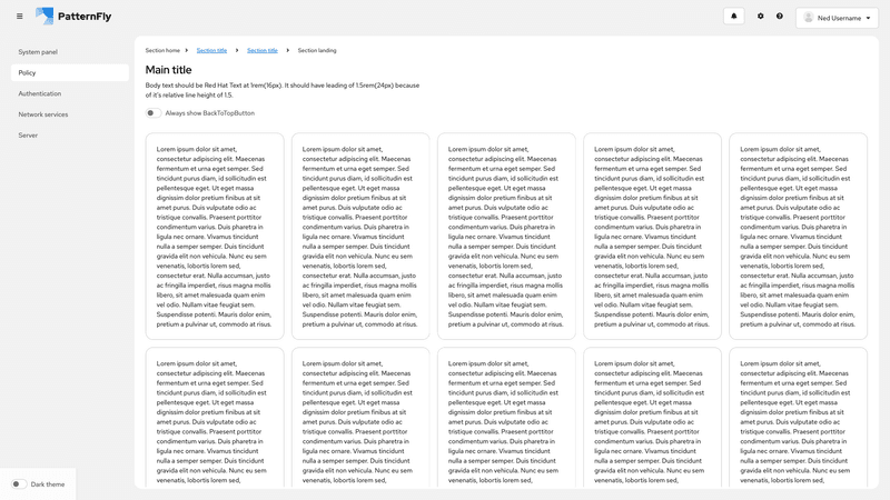Note that tabIndex={0} is added to the scrolling PageSection of the page to allow keyboard users the ability to focus and scroll.