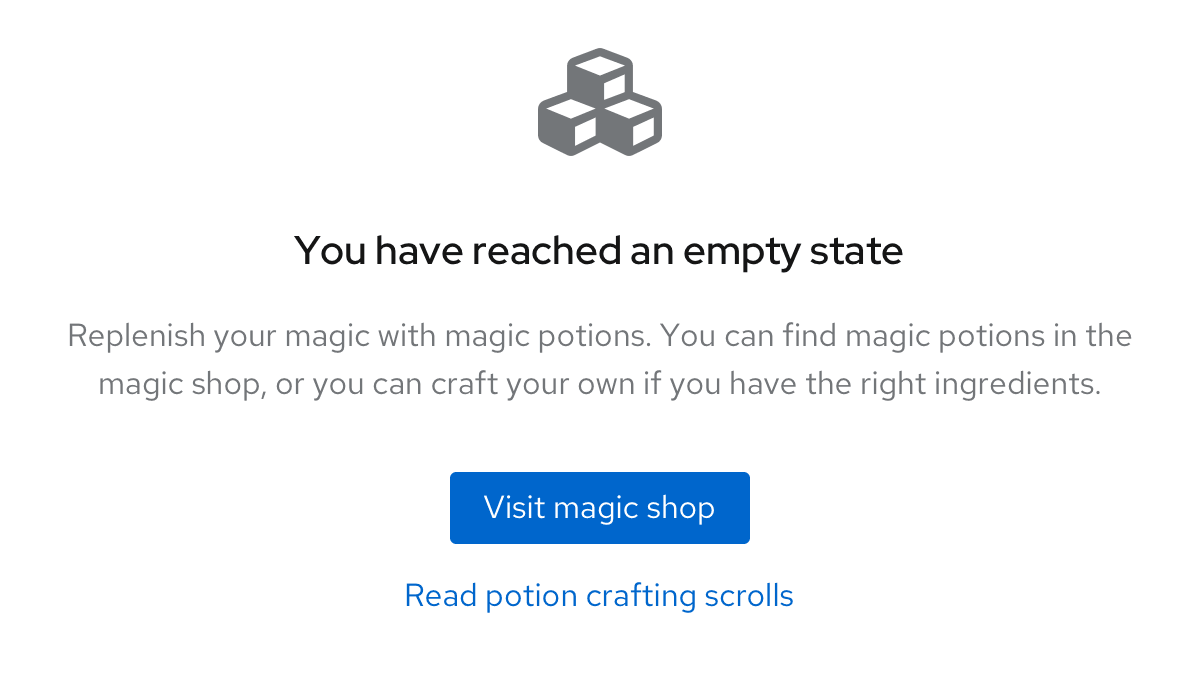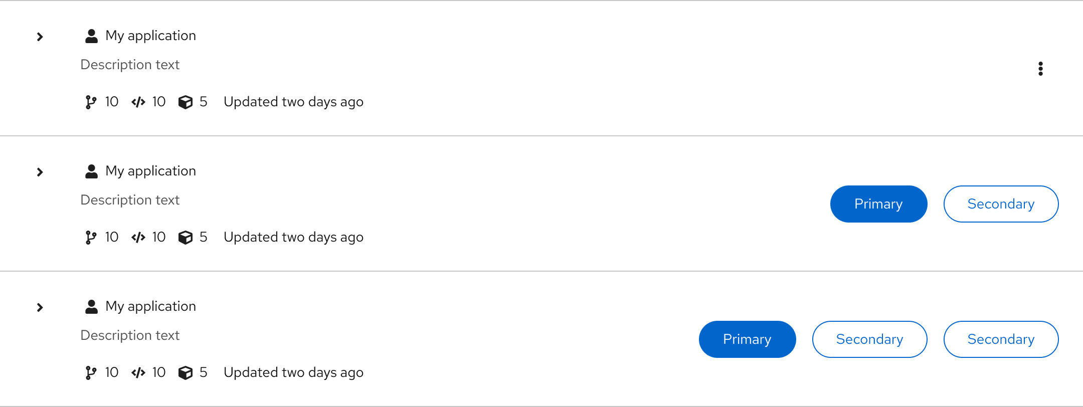 - Make sure that button text is unique and easily understood on its own, so that screen readers may read buttons to users out of context. Refer to PatternFly's accessibility guide for more information.