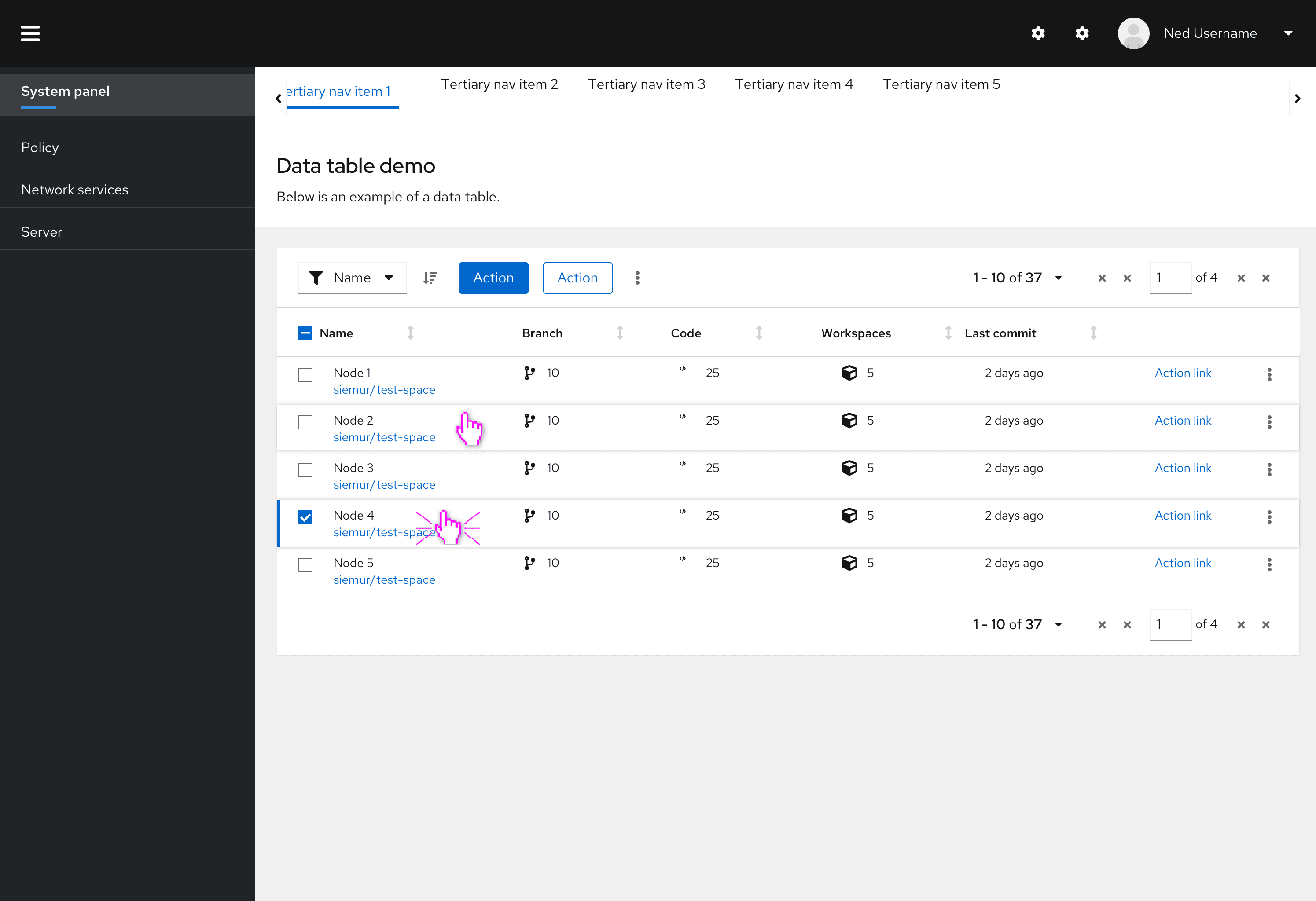 Use specific, action-focused labels that match what the user will see when they arrive at their location. For example, if you are sending a user to a dashboard, your link label might read View dashboard. For a link directing a user to a support forum, the label might read Get help in the support forum. See PatternFly's content guidelines for additional guidance.