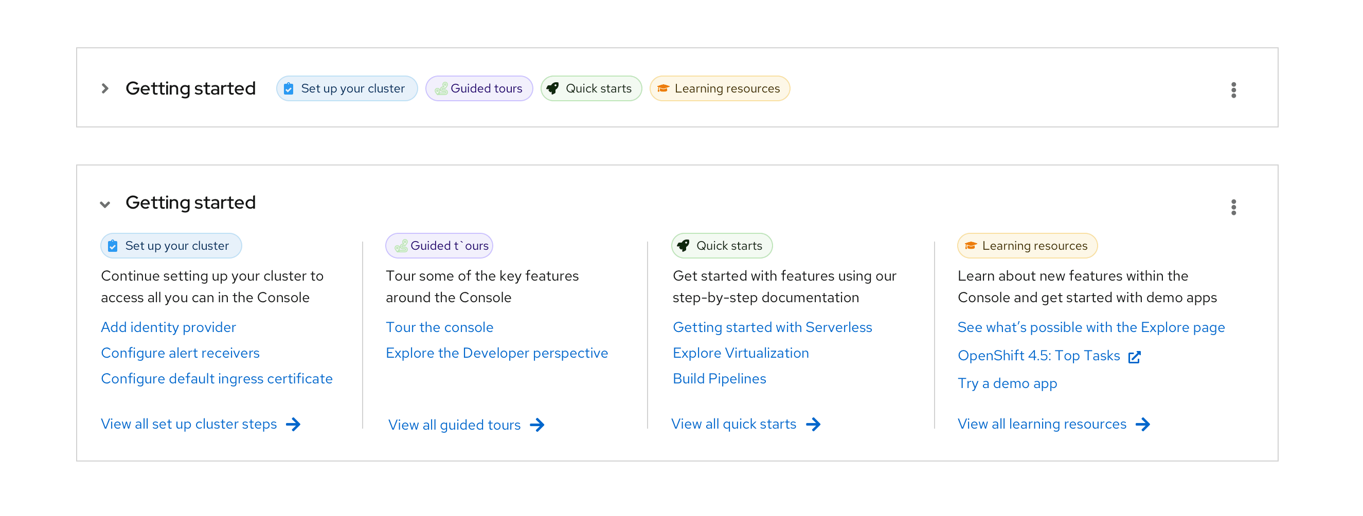 - The option opens an additional resource or triggers an action. Instead, use an actionable card.