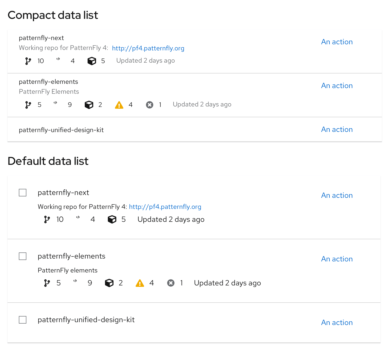PatterFly supports 2 main types of data lists: