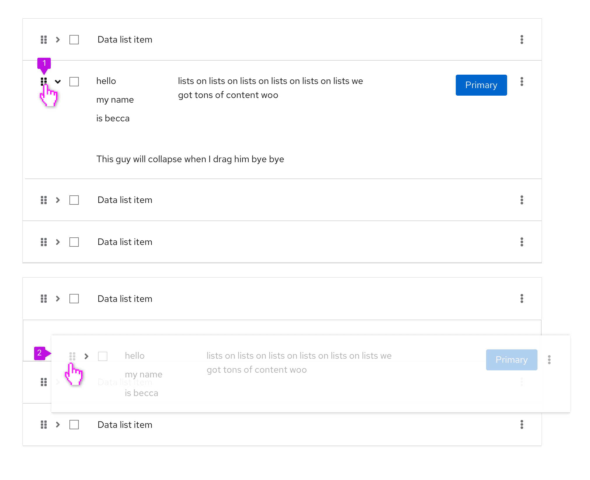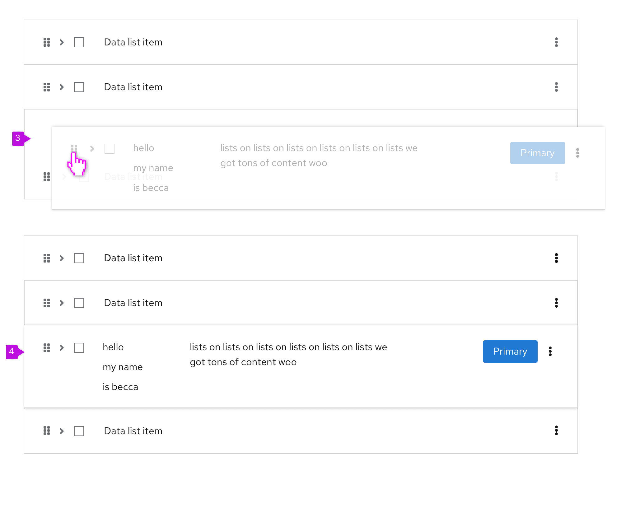 Draggable data list rows can be added to any data list and allow you to customize the order of rows within a data list.
