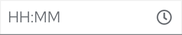 - Time field: Displays a user's selected time. Always fill the time field with a placeholder time format (HH:MM) or a pre-selected time. Users can choose a time by either typing in a time, or selecting one from the menu list of time options. The time field should never be empty.