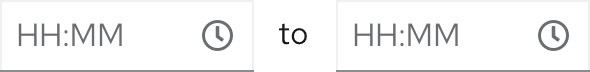 Two time pickers can be used together to specify a time range. The first one functions as a start (“from”) time and the second one functions as an end (“to”) time.