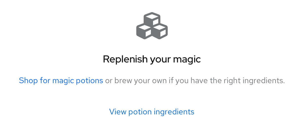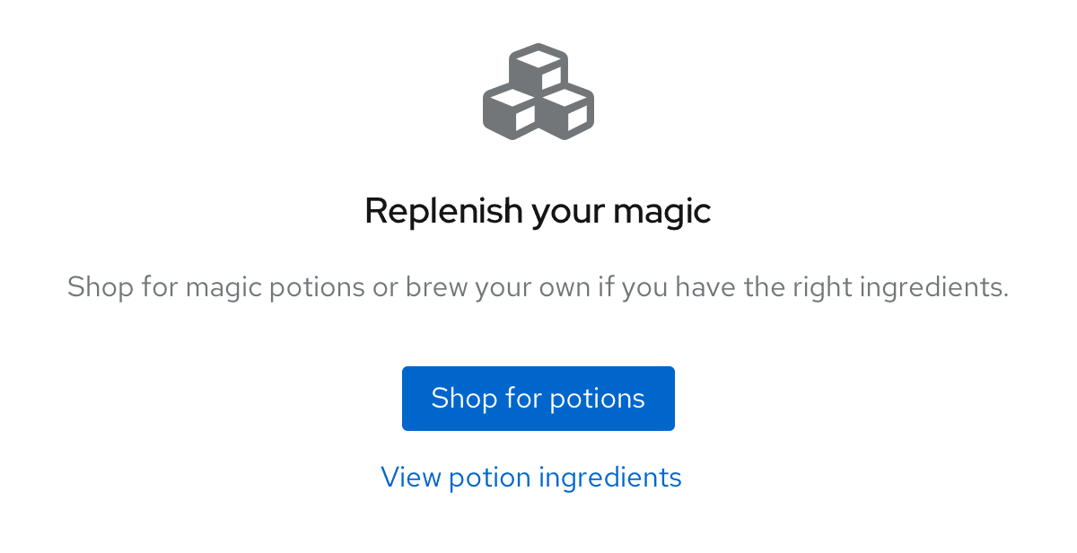 Use buttons and links in empty states to highlight calls to action for the user. There are multiple ways to do this.