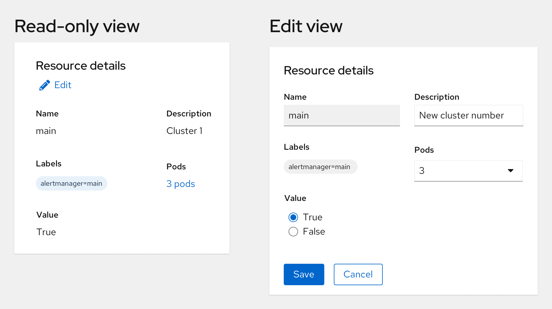 - Non-editable fields should use read-only styling. For example, "Name", and "Labels".
