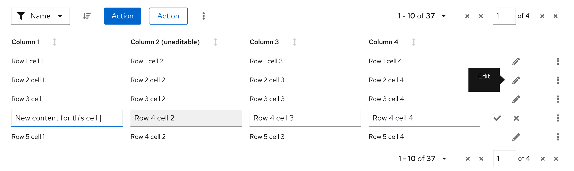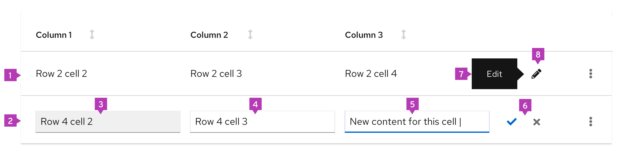 global/icon/brand/default(in this case, PatternFly blue) to increase the visibility of the save action. - The check icon button submits the changes and switches the row back to read-only mode.