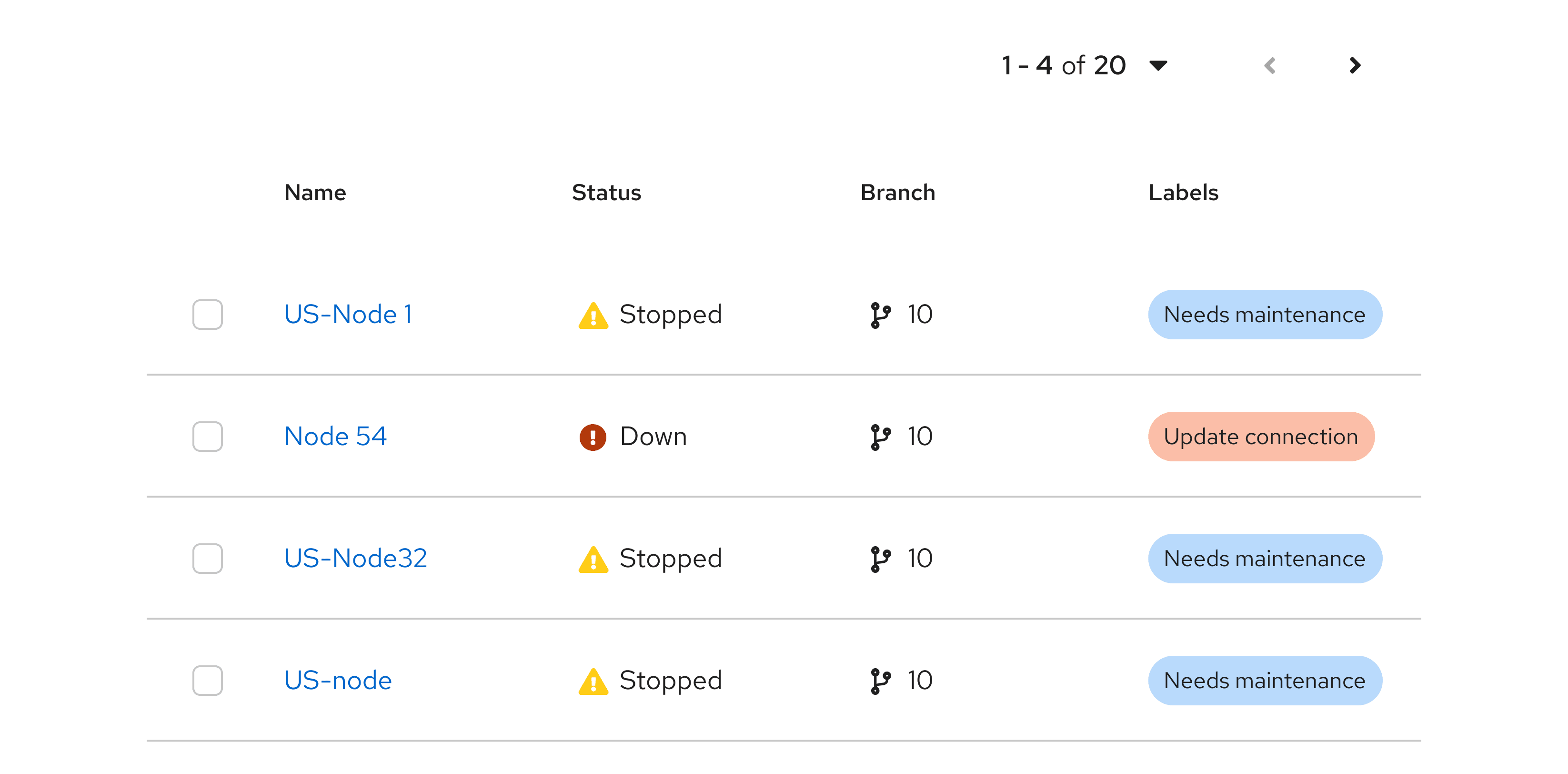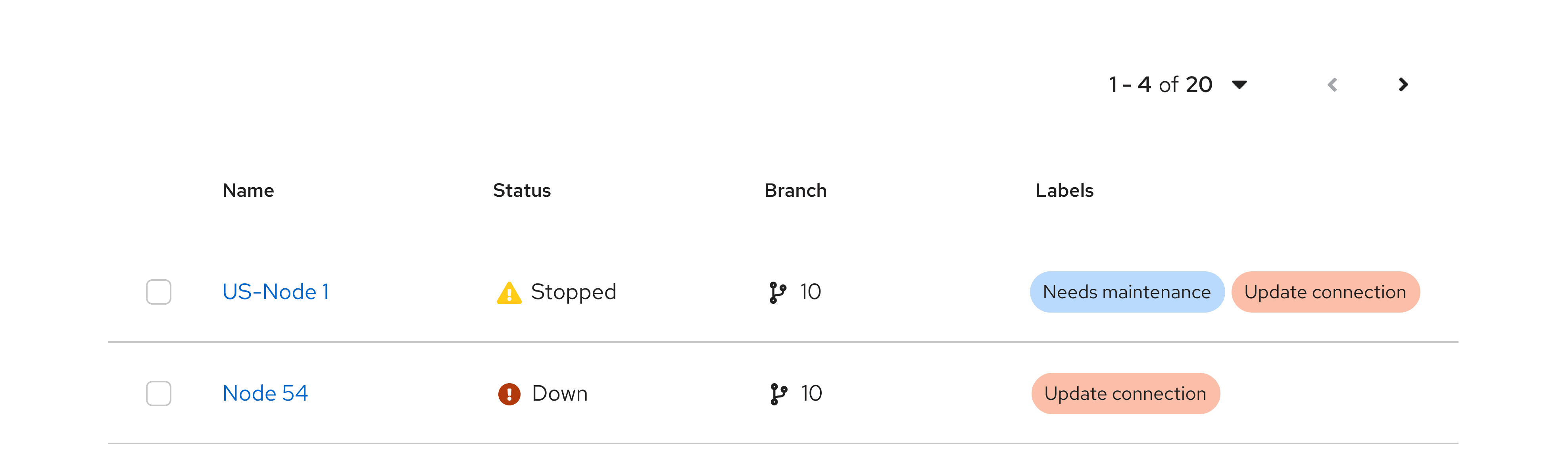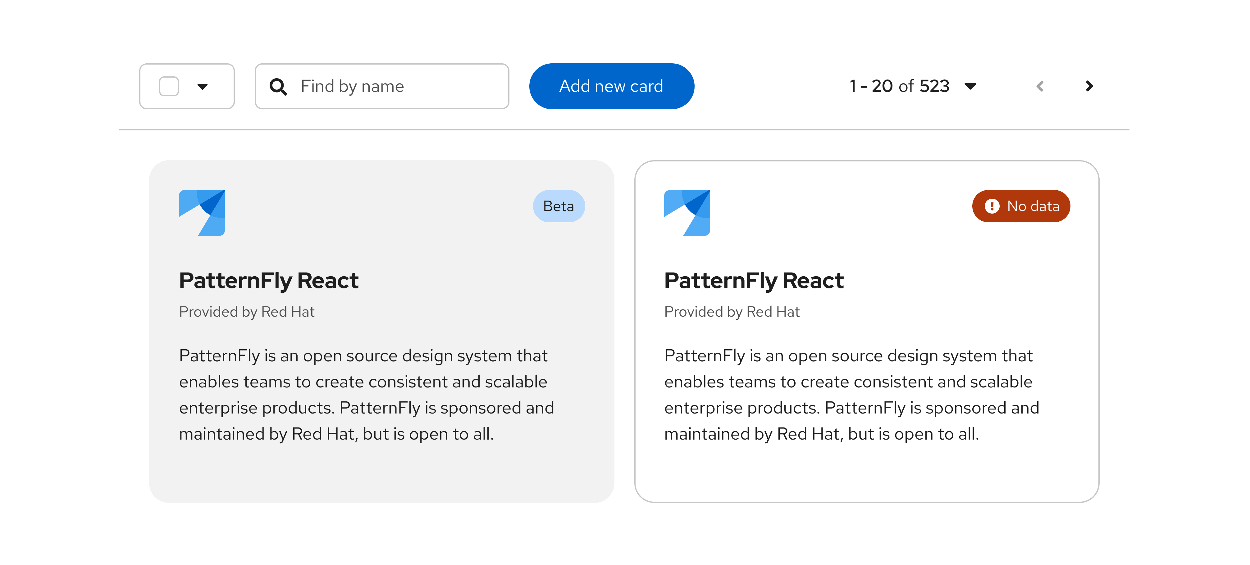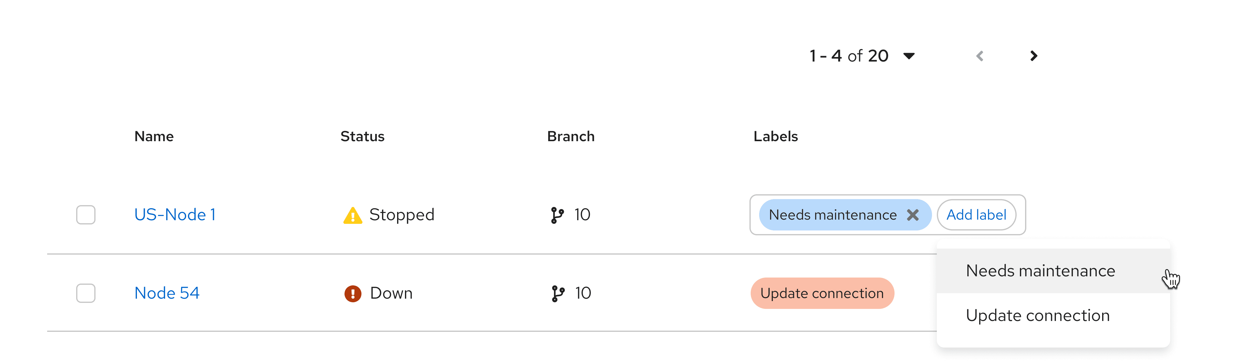 While you may use other colors for your labels, we recommend using the ones provided as they have been carefully selected to be accessible with the PatternFly library. If you choose to use other colors, be mindful of picking accessible text color and icon color to go with the label background.