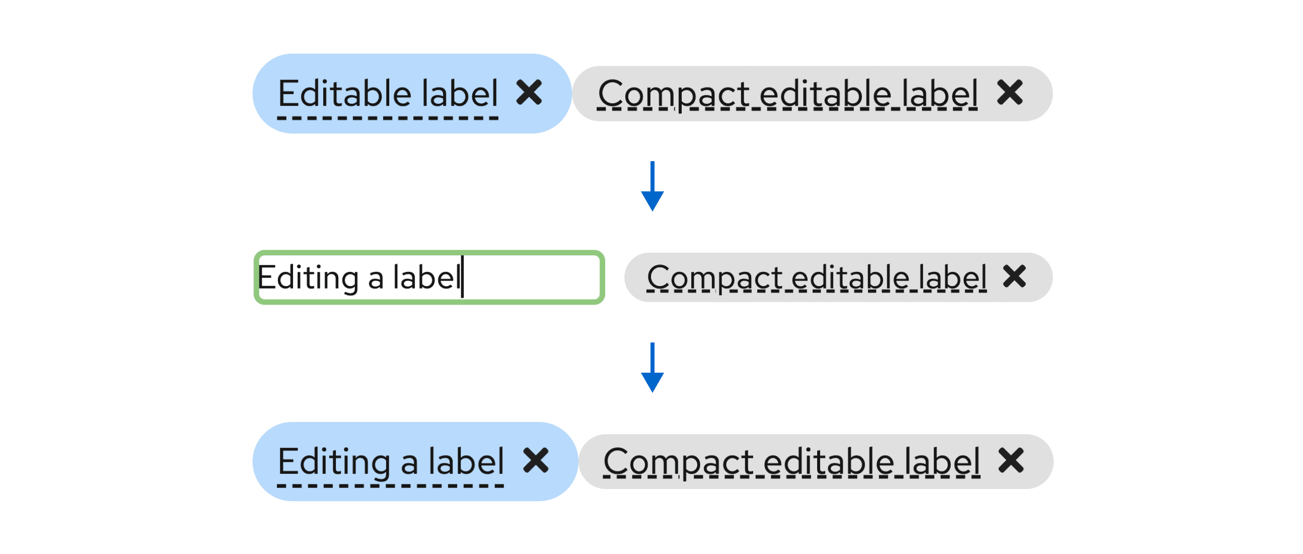 Use a dismissible label for labels that can be easily removed. Editable labels are often dismissible as well.