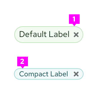 - Dismissible label: Can be removed or dismissed by clicking on the "x" close icon.