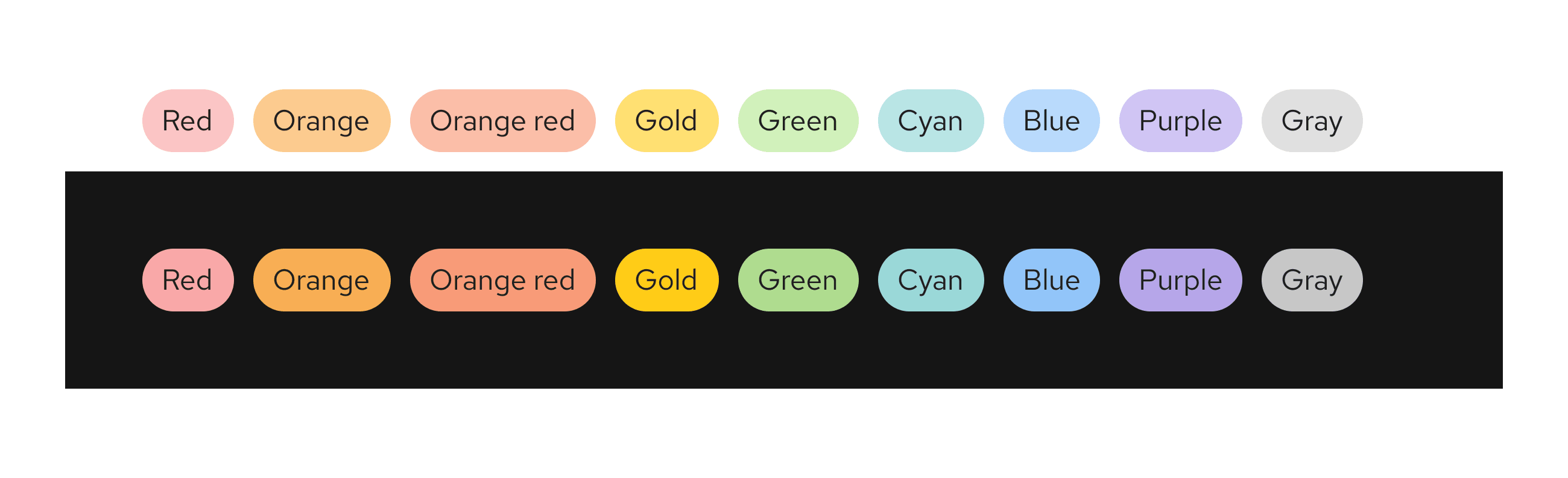 We offer a nonstatus color palette, which you can use to color code labels that don't correspond to any status level, including red, orange, orange red, gold, green, cyan, blue, purple, and gray.