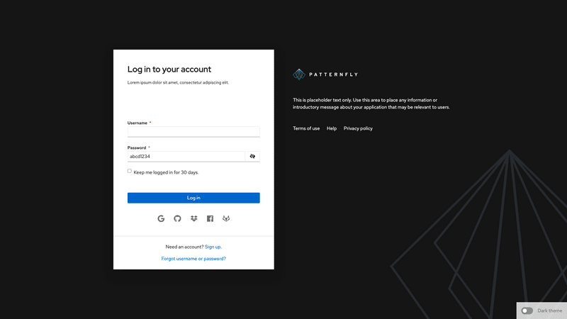 | .pf-v6-c-login | --pf-v6-c-login__main--BackgroundColor | (In light theme) #ffffff | ||