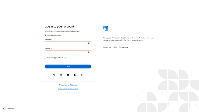 | .pf-v6-c-login | --pf-v6-c-login__container--xl--GridTemplateColumns | 34rem minmax(auto, 34rem) | ||