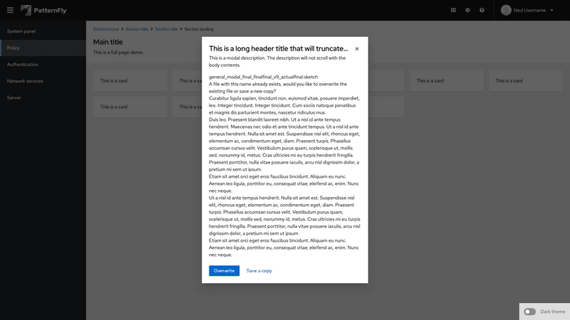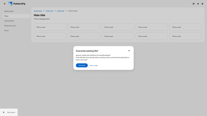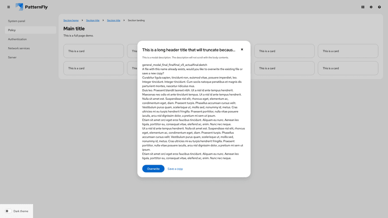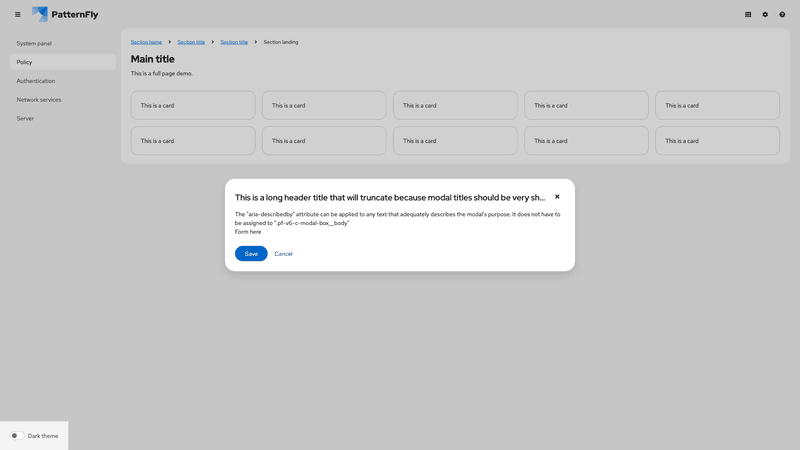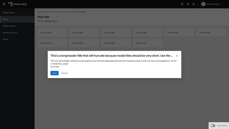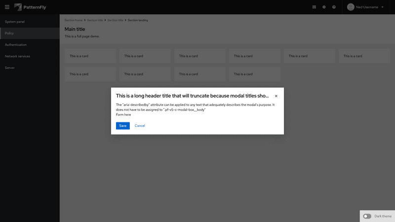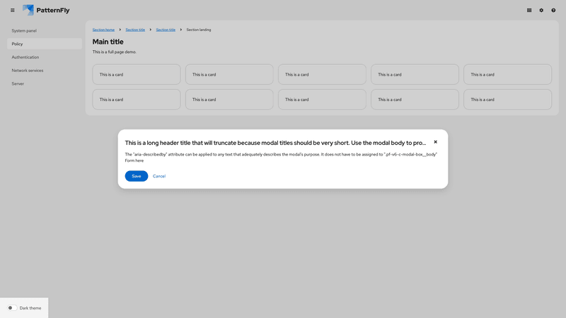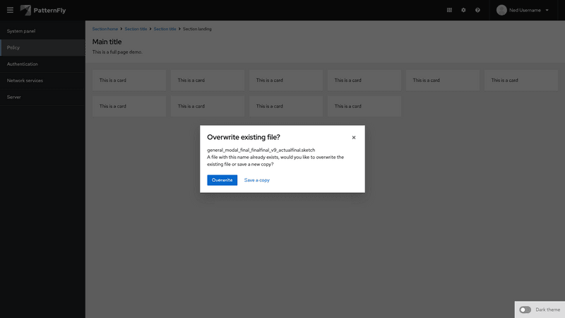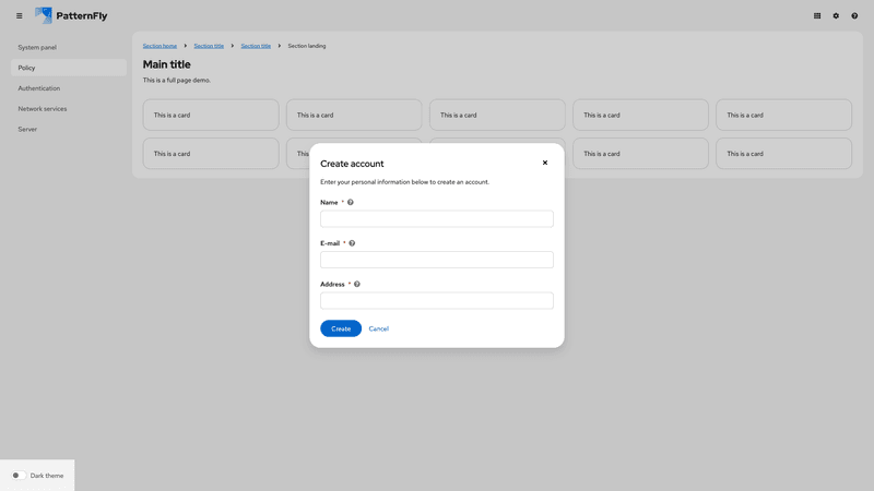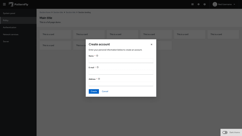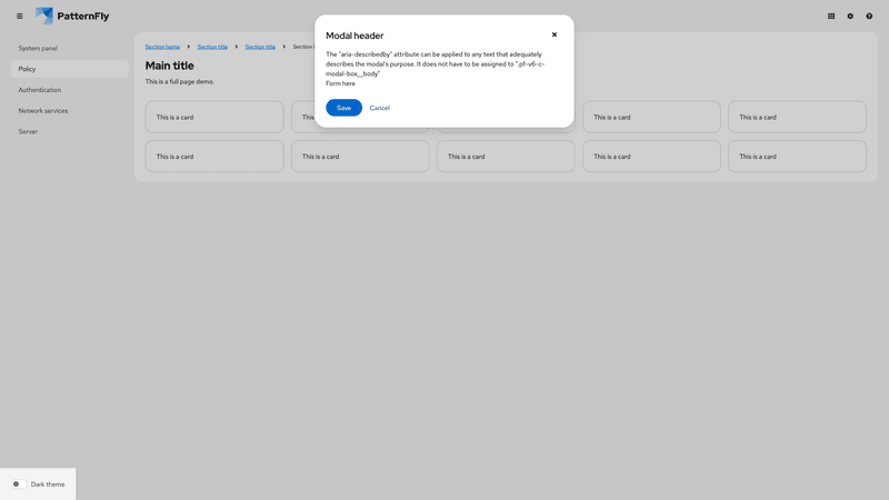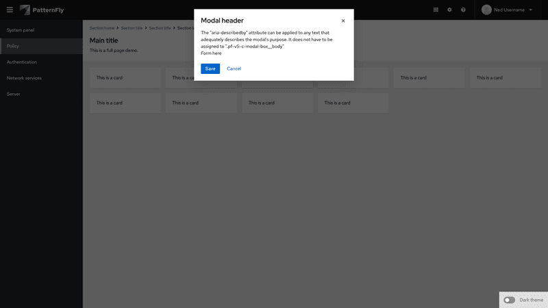 A modal is a window that overlays a page to display important information, without requiring users to navigate to a new page.