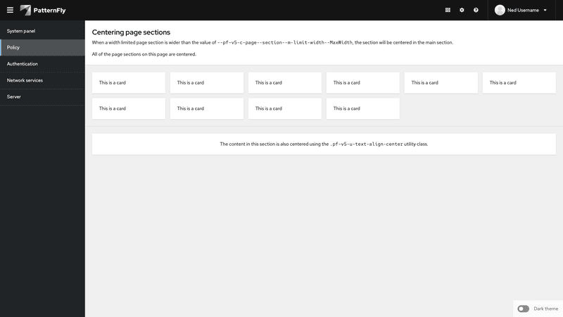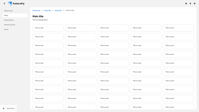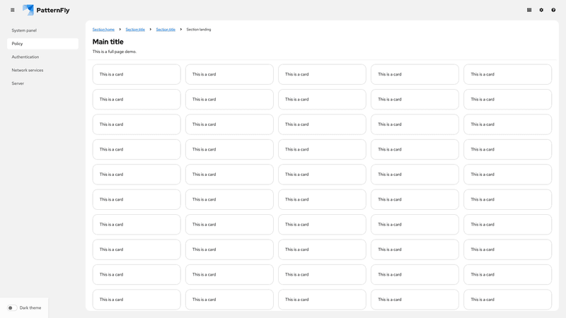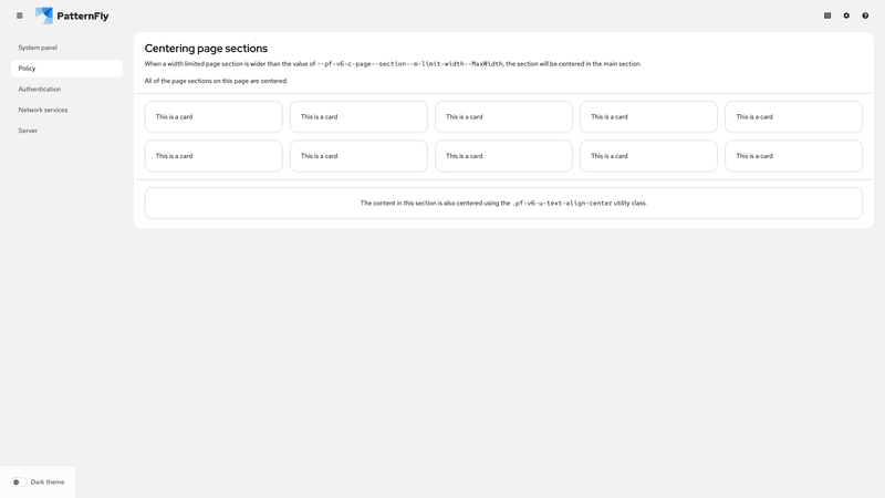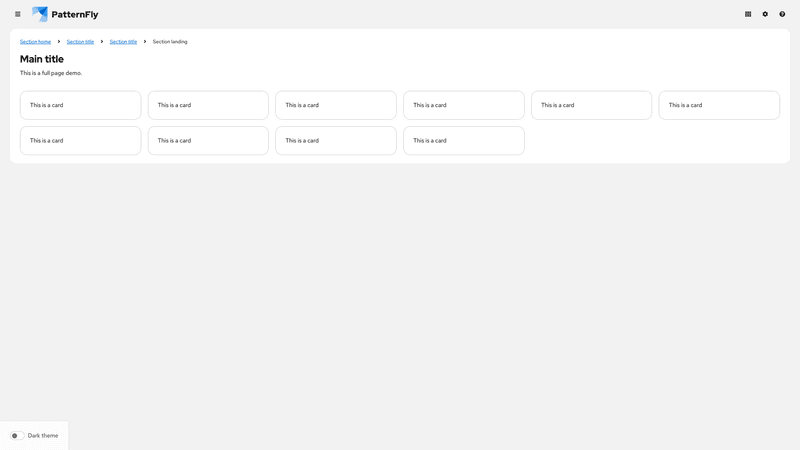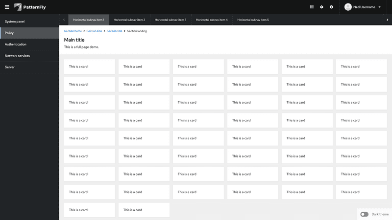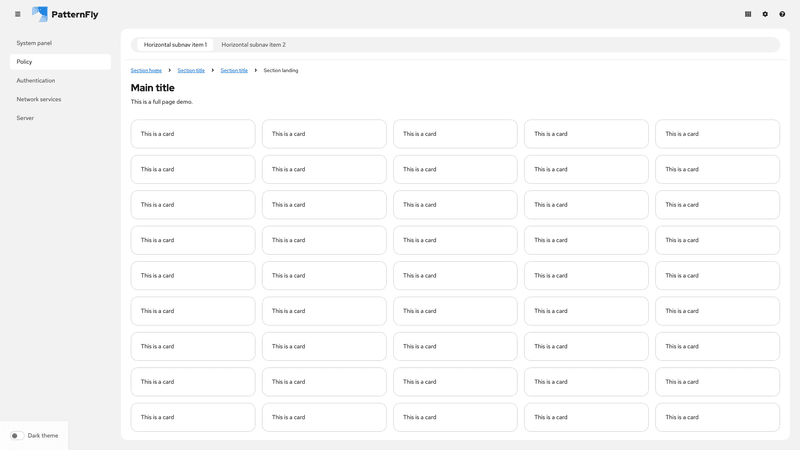 component defines the basic layout of a page, with either vertical or horizontal navigation.