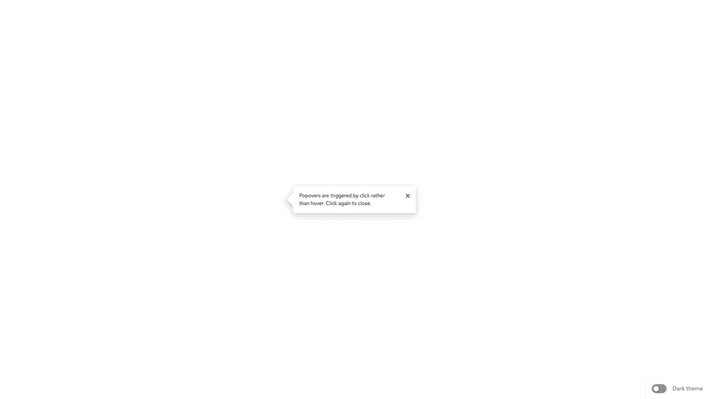 A popover is used to provide contextual information for another component on click. The popover itself is made up of two main elements: arrow and content. The content element follows the pattern of the popover box component, with a close icon in the top right corner, as well as a header and body. One of the directional modifiers (.pf-m-left, .pf-m-top, etc.) is required on the popover component