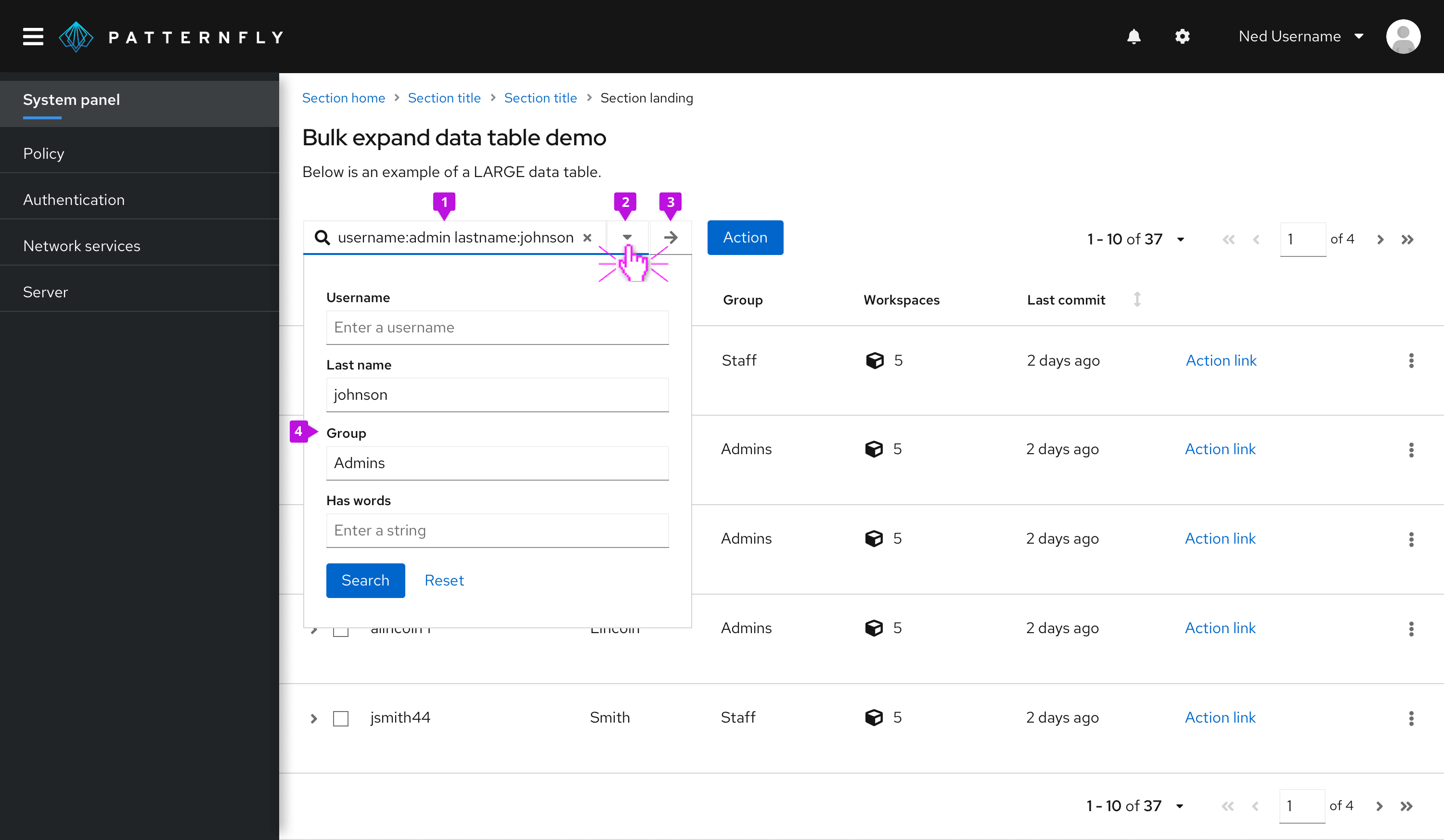 gold-50from the PatternFly color palette.Current highlight: The active match will be highlighted with