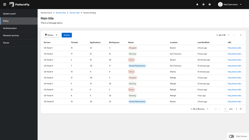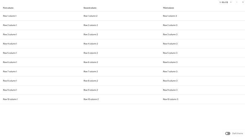 The below example illustrates the isLastFullPageShown prop, which makes the following changes when the user sets the number of items to display per page to an amount that exceeds the remaining amount of data: