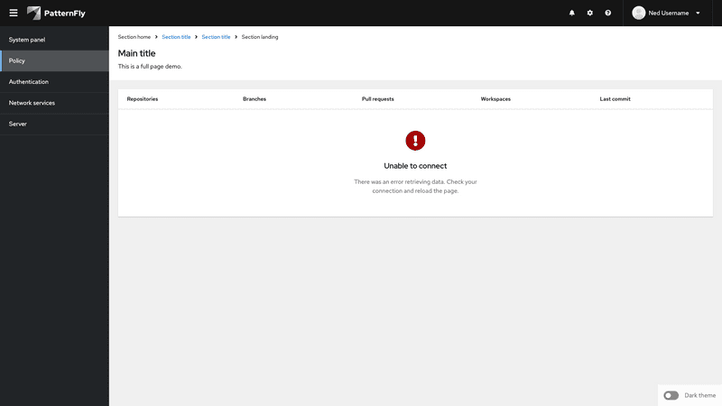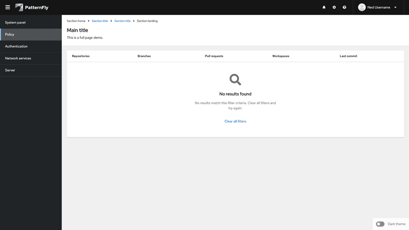 These examples demonstrate the use of an Empty State component inside of a Table. Empty states are useful in a table when a filter returns no results, while data is loading, or when any type of error or exception condition occurs.