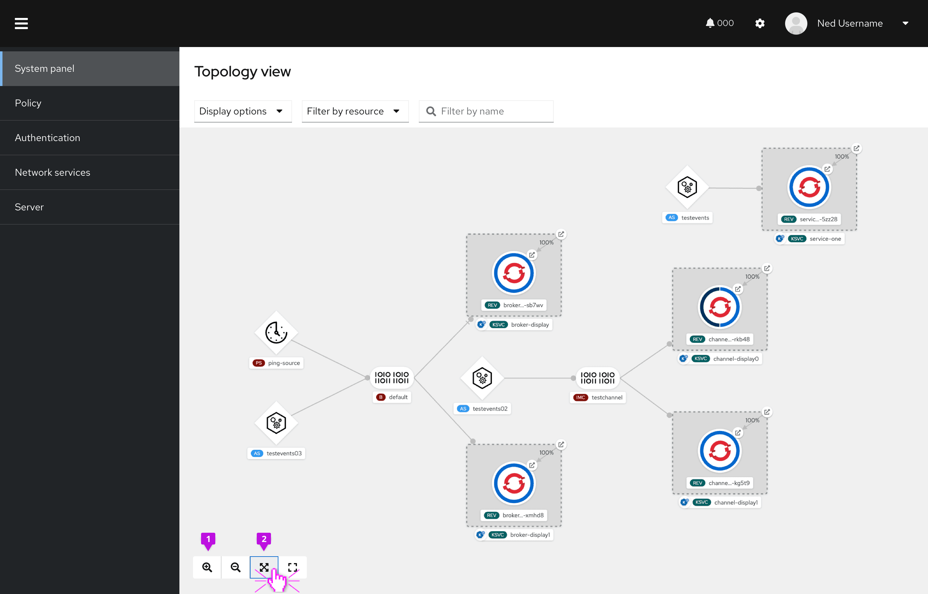 - Fit to screen: This action will fit the Topology view to screen. After selection, the item will return to its default state, with a white background.