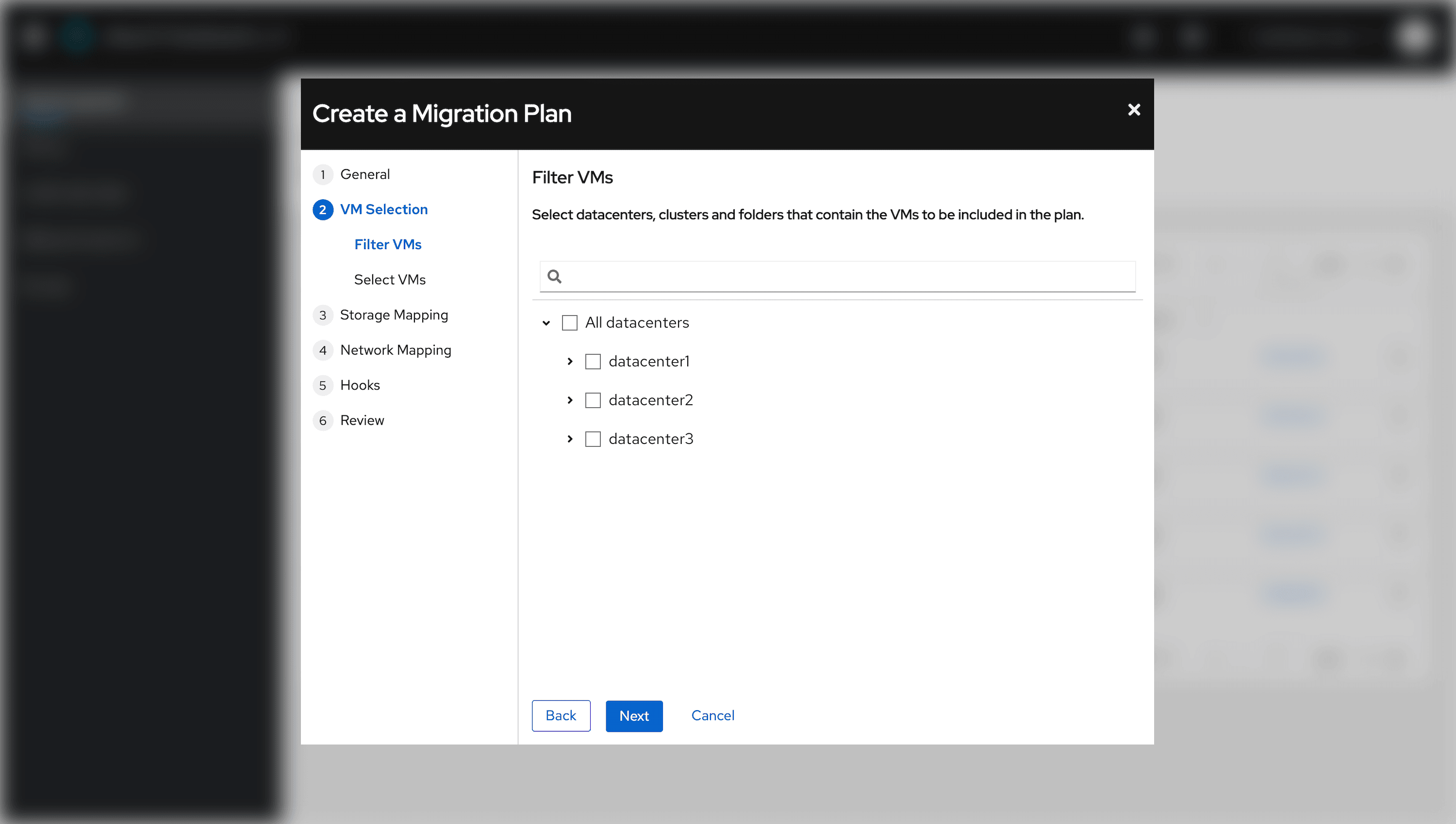 A tree view in a wizard allows users to apply multiple filters or select multiple items that are specific to their current step.