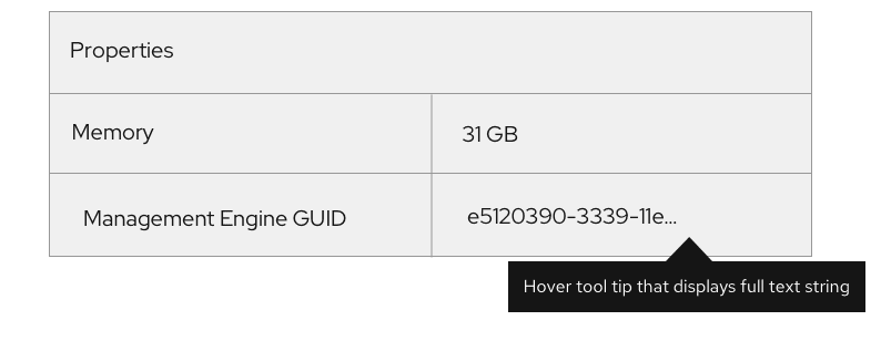 - Always include hover tooltip to display the entire string to the user.