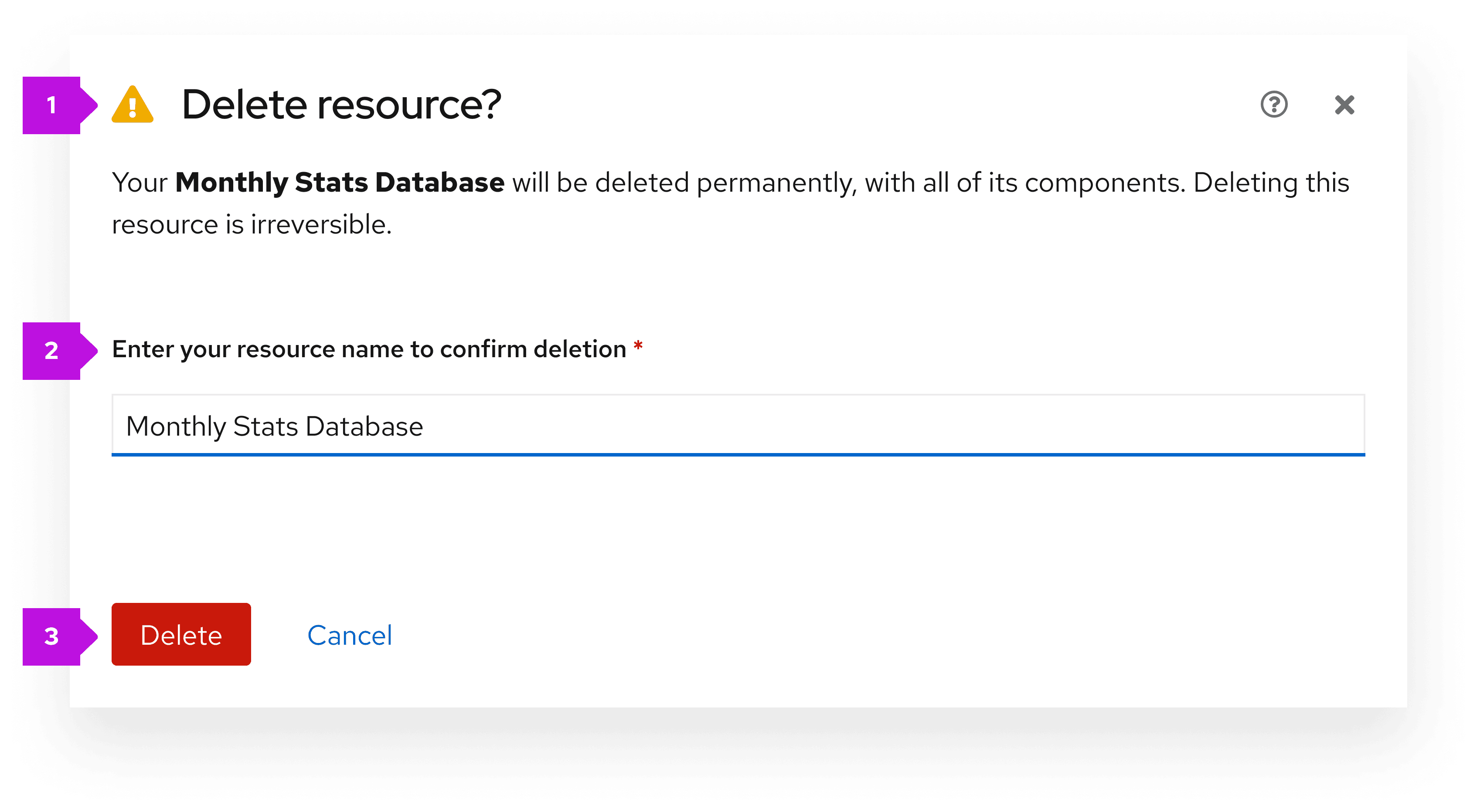 When resource deletion is irreversible, there is a high risk that users will lose highly important information or data, so you should ensure that they understand the impact of deletion.