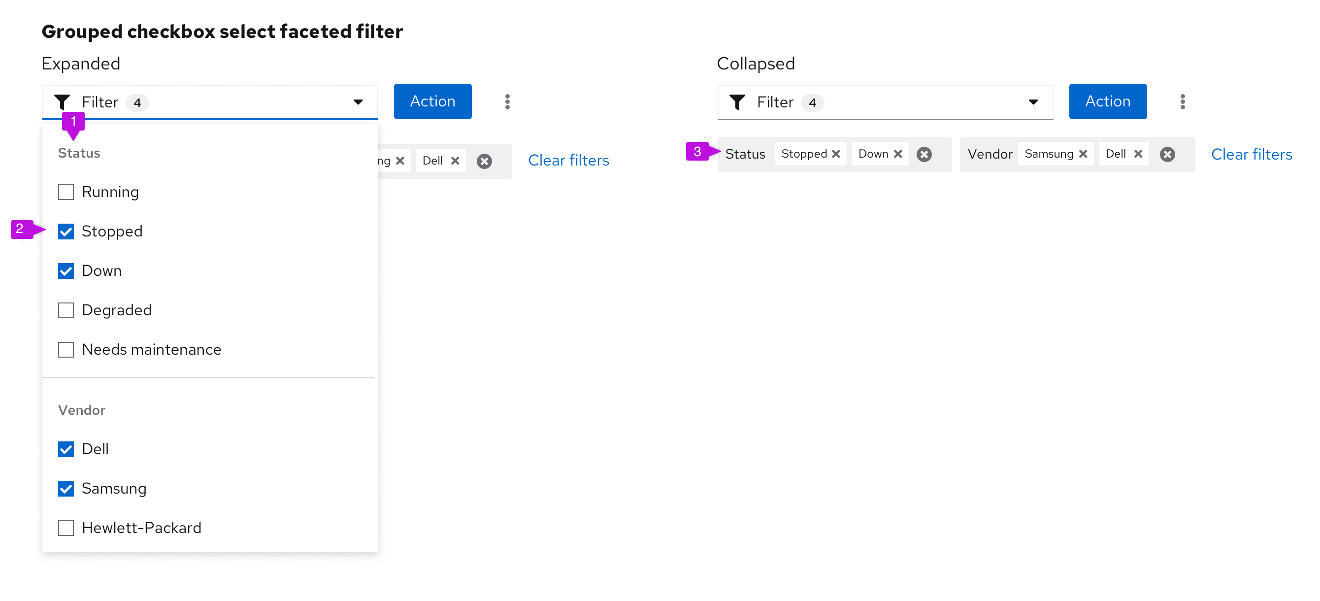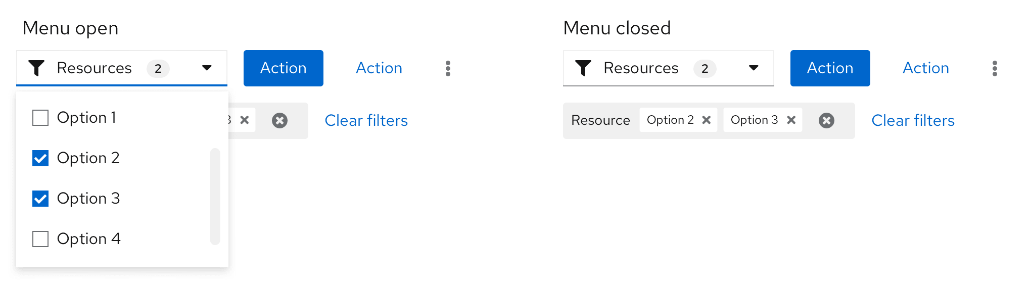 - Filter labels: A way for users to see their selections when the menu is closed.