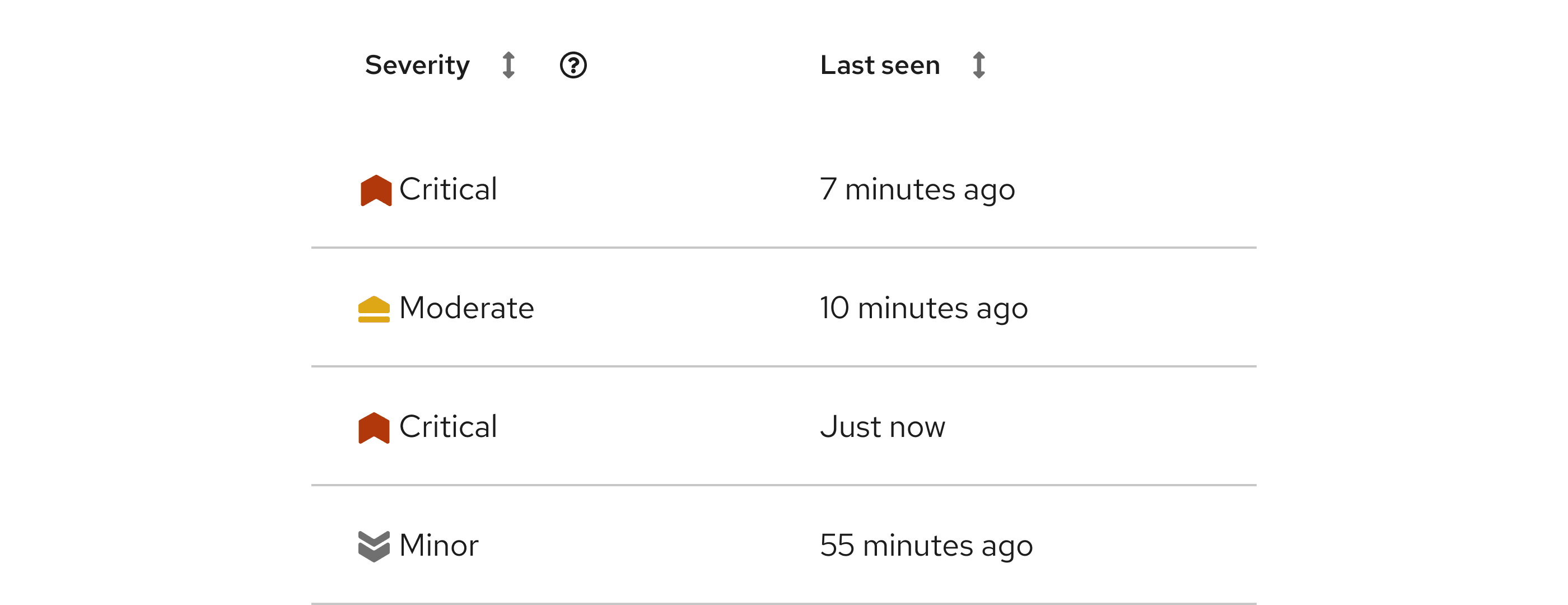 - Without applying the proper color. The severity color palette was chosen carefully to communicate a clear range of urgency, while ensuring proper color accessibility.
